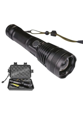 Міцний захисний кейс. Корпус: пластик. COB LED, XPE LED лампи. Бокове світло. 3 режими роботи Телескопічний ZOOM. Заряджання: USB Type-C. Довжина: 9,5 см. Колір: чорний.