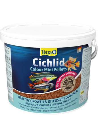 Високоякісний повнораціонний корм з натуральними підсилювачами кольору для здорового та збалансованого харчування маленьких цихлід. Формула підтримує довге та здорове життя Багатий високоякісними білками та іншими поживними речовинами для збалансованого харчування Гранули містять натуральні підсилювачі кольору Для інтенсивного та яскравого забарвлення, особливо для цихлід з червоним, помаранчевим та жовтим забарвленням Мінігранули ідеально підходять для маленьких цихлід Чиста вода та покращена якість води завдяки легким для поїдання та добре засвоюваним мінігранулам Оптимально підібрана білкова суміш для здорового росту Унікальна рецептура та високоякісні інгредієнти без барвників та консервантів Склад: риба та рибопродукти, екстракти рослинних протеїнів, дріжджі, продукти рослинного походження, рідкі та тверді жири, молюски та ракоподібні, мінерали. Аналітичний склад: сирий протеїн 47%, сирий жир 9%, сира клітковина 2%, вміст вологи 8%. Харчові добавки: вітамін D3 2075 МО/кг. Регулятори кислотності: лимонна кислота 333 мг/кг