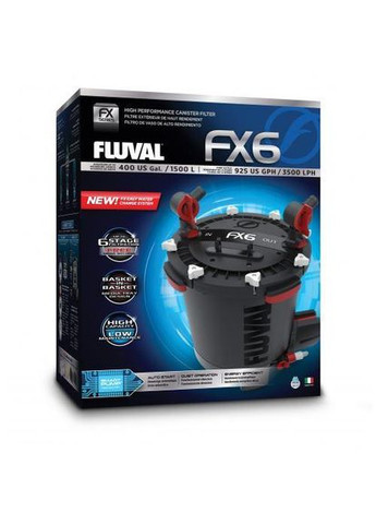 Високопродуктивний каністровий фільтр: Багатоступеневий фільтр відкачує вражаючі 3500 л води на годину Покращена технологія двигуна забезпечує кращу продуктивність, споживаючи на 10% менше електроенергії, ніж попереднє покоління Smart Pump ™ - передова технологія мікрочіпів постійно контролює та оптимізує роботу насоса Самозапуск-просто додайте воду, підключіть її, і Smart Pump ™ візьме верх. Повітря, що затримується, автоматично відводиться кожні 12 годин для забезпечення максимальної ефективності Легка заміна води усуває необхідність піднімати важкі відра. Просто приєднайте шланг до виходу (комплект продається окремо), а інше зробить Smart Pump ™ Знімні кошики для носіїв, які можна скласти, усувають водний байпас і вміщують загалом 5,9 л (1,5 галлону США) носія Клапани розташовані під зручним кутом 45 градусів для легкої установки та обертання Телескопічний фільтр проти забивання забезпечує безперервний потік води Різнонаправлені вихідні форсунки можуть бути повністю відрегульовані для створення індивідуальних потоків води Продувний клапан зі зливним шлангом для легкого обслуговування та промивання каністри Прогумовані ніжки допомагають забезпечити безшумну роботу Високий дизайн 53 см (21 дюйм) - легко поміщається під більшість акваріумів Зроблено в Італії Для використання в прісноводних та морських акваріумах Розроблений для акваріумів об'ємом до 1500 л (400 галлонів США), FX6-це потужний робочий коник лінійки каністр Fluval, який має всю потужність та надійність, яких ви очікуєте від високопродуктивного фільтра. Місткість акваріума: 1500 л Швидкість потоку 2130 л Потужність насоса: 3500 л / ч Механічна зона: 2100 см² Ємність кошика для матеріалів: 5,9 л Обсяг фільтрації: 20 л Висота (макс.): 3,3 м Потужність 120 В / 60 Гц: 43 Вт Потужність 230-240 В / 50 Гц: 41 Вт