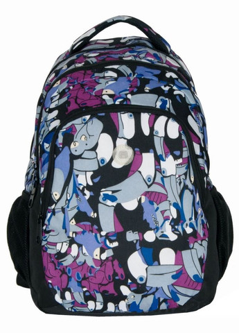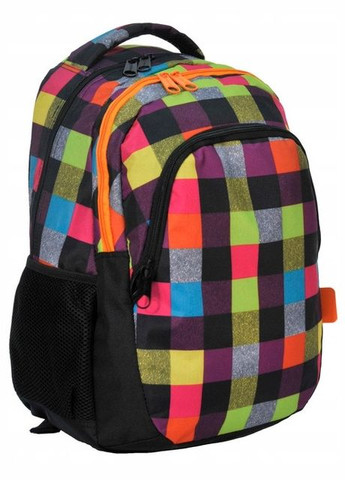 Виріб виготовлений із міцної синтетичної тканини стійкою до вигоряння, а також з водовідштовхувальними властивостями. Рюкзак має три основні відділення на якісних змійках. Органайзер з кишенею на блискавці та затискачем для ключів у передньому відділенні. У великому відділенні є кишеня з виходом для навушників та перегородка для планшета. Кишеня на блискавці на лицьовій стороні рюкзака. Дві кишені з боків рюкзака з еластичної сітки, наприклад, для пляшки з водою. Профільовані лямки з регульованою довжиною, м'якою набивкою, обтягнуті сіткою. Зручна та практична верхня ручка для перенесення рюкзака. Додаткова ручка для підвішування рюкзака у гардеробі на гачок. Посилена спинка набита м'яким наповнювачем, покрита сіткою, що забезпечує надходження повітря. Міцні та зручні у використанні блискавки адаптовані для частого використання. Рюкзак вільно розміщується у форматі А4. Світловідбивні елементи на лямках рюкзака. Якісний, міцний, вологостійкий матеріал – поліестер 600 Ден. Характеристики Виробник: Paso, Китай. Країна походження ТМ: Польща. Матеріал: поліестер 600 Ден. Колір: кольоровий. Розміри: 43x31x19 см. Об'єм: 25 л. Вага: 580 р.
