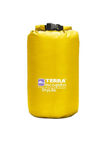 Гермомішок Terra Incognita DryLite 10 з надлегкої армованої тканини. Особливості: 100% водонепроникність проклеєні шви система закривання RollProff Характеристики: об'єм: 10 л висота: 34 см діаметр: 20 см вага: 60 г матеріал: Нейлон 210T Diamond Rip Stop 10000