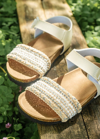 Відчуйте ідеальне поєднання стилю та комфорту з нашими плетеними сандалями для дівчаток. Виготовлені з м'якої поліуретанової шкіри, ці босоніжки мають витончену золотисту обробку і складні деталі плетіння. Гумова підошва забезпечує довговічність та зчеплення.