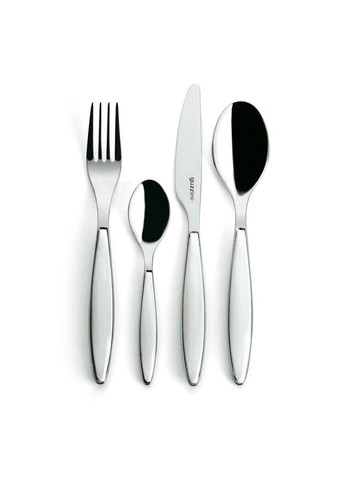 Набір столових приладів Guzzini Feeling 23000011 Столові прилади Guzzini Feeling 23000011 виготовлені з високоякісної нержавіючої сталі. Набір на 6 персон включає всі необхідні прилади. Підходить для миття в посудомийній машині. Характеристики: Тип: набір столових приладів Матеріал: нержавіюча сталь Кількість предметів: 24 Кількість персон: 6 Колір: сріблястий Колір ручки: сріблястий Серія: Feeling Виробник: Guzzini Склад набору: Ніж столовий: 6 шт Вилка столова: 6 шт Ложка столова: 6 шт Ложка чайна: 6 шт