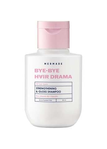 Шампунь для зміцнення та сяйва волосся Mermade Keratin & Pro-vitamin B5 з кератином, пантенолом та сечовиною Шампунь для частого миття голови Mermade Keratin & Pro-vitamin B5 з кератином, пантенолом та сечовиною Шампунь для щоденного використання делікатно та ефективно очистить шкіру голови, зволожить волосся та подарує їм дзеркальний блиск волоссю. Шампунь відмінно піниться, і чудово миє волосся навіть у твердій водопровідній воді. До складу мийного засобу для волосся включені добавки, що кондиціонують, які в комплексі з екстрактами роблять локони еластичними і блискучими. Цей шампунь підходить для волосся всіх типів — сухого, жирного, комбінованого, тонкого, кучерявого. Активні компоненти шампуню для волосся: олія макадамії - джерело вітамінів А, В і Е, ненасичених жирних кислот, завдяки яким підвищує гладкість і пружність сухої шкіри голови й чудово зволожує локони та надає їм сяйва; гідролізовані протеїни кератину - допомагають відновити структуру волосся, м'яко огортають його, роблять сильнішими та допомагають протистояти травмуючим процедурам; провітамін В5 (пантенол) – зволожує та заспокоює шкіру голови; сечовина – чудово зволожує, створює захисну плівку, допомагаючи попередити втрату вологи з поверхні шкіри голови та волосся. Результат при регулярному використанні шампуню Мермейд: сяюче і шовковисте волосся; антистатичний ефект; природний блиск пасом. Переваги застосування шампуню для волосся підходить для води будь-якої жорсткості; містить кондиціонуючі добавки, що спрощують розчісування; утворює густу піну; дарує ніжний квітковий аромат; може використовуватися для частого миття волосся; не містить SLS, парабенів. Шампунь для частого миття голови випускається в тревел-версії 85 мл, тому ви зможете взяти його і в спортзал, і в ділову поїздку, і в похід. Спосіб застосування: Спіньте потрібну кількість шампуню в долонях. Поступово розподіліть піну по волоссю і шкірі голови, промасируйте шкіру. Змийте засіб з волосся та шкіри голови. Якщо потрібно, повторіть процедуру. Для більш вираженого ефекту гладкого волосся використовуйте разом із кондиціонером для зміцнення та сяйва волосся Mermade Keratin & Pro-vitamin B5. Об'єм: 85 мл