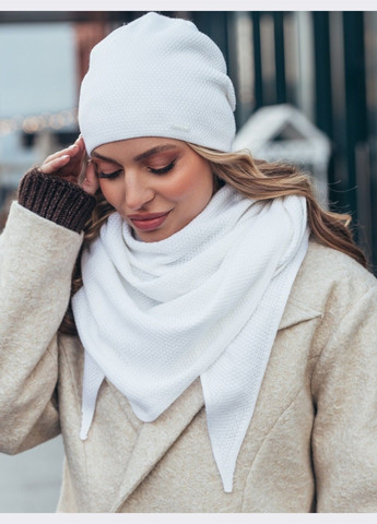 В'язаний комплект складається з двосторонньої шапки і шарфа-снуда, утепленого флисом. В'язка дрібна візерункова.