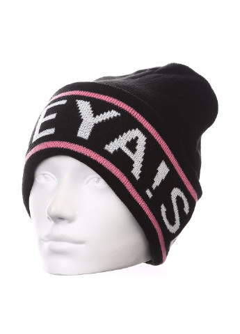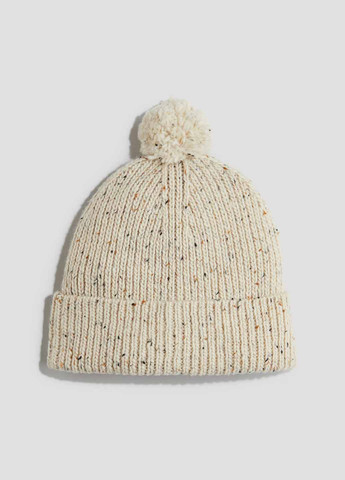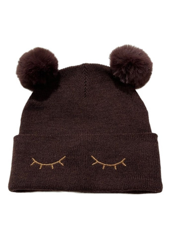 Шапка з м'якої змішаної тканини косої в'язки з м'яким помпоном зі штучного хутра зверху та відворотом по краю з вишитою аплікацією >9. Можливе пошкодження бірки