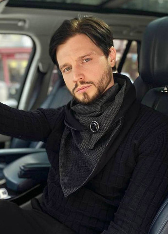 Чоловічий 2-сторонній вовняний шарф, чорний, гусина лапка "Единбург", на кільцях, від My scarf снуд, бактус