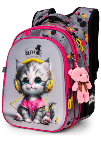 Каркасний рюкзак – ортопедична модель для дітей 6-8 років, виготовлена ​​з міцного поліестеру. Класичний шкільний рюкзак для першокласників та учнів початкової школи, в якому традиційна форма бездоганно поєднується із сучасним дизайном. Каркасна модель допомагає непосидам підтримувати порядок у рюкзаку. Завдяки стійкому щільному коробу рюкзак завжди тримає форму. Стінки не мнуться і не прогинаються, а значить – зошити надійно захищені від застрягань та пошкоджень. Каркасна форма допомагає дитині легше систематизувати речі та привчає до порядку. Модель отримала сертифікат німецького Інституту здоров'я та ергономіки IGR, рекомендована для дітей зростом 115 – 130 см. Комфортна спинка, зручний функціонал та яскраве оформлення: ця зразкова модель для початкової школи допоможе дитині легко та швидко влитися у навчальний процес. Стильний дизайн із чарівним пуделем надихне вчитися на «відмінно». Рюкзак зовні запатентована ортопедична спинка Ergo Kids з дихаючими м'якими подушечками повторює природні вигини спини та зменшує навантаження на неї; широкі S-подібні лямки запобігають виникненню дискомфорту в плечах та сприяють підтримці правильної постави; 1 об'ємна передня кишеня за розміром пристосована під ланчбокс або пенал; 2 бічні кишені з клапаном на липучці для пляшечки з водою або термоса (при необхідності клапани можна сховати всередину); світловідбиваючі елементи з усіх боків рюкзака підвищують видимість дитини на дорозі увечері; ергономічна гумова ручка-перенесення (яку легко дезінфікувати) та текстильна петля – для зручного транспортування та зберігання; нагрудний ремінь – для правильного розподілу ваги та фіксації рюкзака; знімний поясний ремінь забезпечує додаткову підтримку та зниження навантаження; прогумоване посилене дно легко миється і забезпечує стійкість рюкзака: він рівно стоїть на підлозі і не падає; надійна фурнітура: високоякісні зносостійкі блискавки, приємні на дотик кулери з гумовим напиленням; основний матеріал: міцний поліестер, який довго зберігає первісний вигляд, не деформується та не вигоряє на сонці; декор: патерн, об'ємна аплікація із фактурних матеріалів, текстильний бантик, пухнаста хутряна підвіска. Рюкзак усередині 1 основне відділення; 1 кишеня для телефону з м'якою плюшевою підкладкою, що захищає гаджет; кишеню з плюшем для планшета; система роздільників з фіксатором на гумці забезпечує порядок, що відіграє важливу роль у правильному розподілі ваги; міцна брендована підкладка; поле для запису персональних даних; значки-підказки допомагають швидко орієнтуватися у вмісті рюкзака.