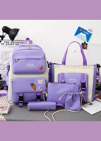 Універсальний Набір "4в1": Рюкзак, Сумка, Клатч, Пенал + Брелок – Стиль та Практичність для Кожного Дня! Представляємо неймовірно функціональний та стильний комплект, який стане вашим незамінним помічником у будь-якій ситуації – від міських прогулянок до подорожей та щоденних справ. Цей набір "4в1" включає рюкзак, сумку, клатч, пенал та милий брелок, пропонуючи максимум можливостей для організації ваших речей. _________________________________________________________________________________ Набір "4в1" – Максимум Можливостей: Рюкзак (39х29х10 см): Просторий та місткий, ідеально підходить для книг, ноутбука, спортивної форми або речей для невеликої подорожі. Забезпечує комфортне носіння завдяки регульованим лямкам. Сумка (28х27х6 см): Стильна сумка-шопер або крос-боді, чудово підійде для щоденних виходів, покупок або як додатковий аксесуар до рюкзака. Клатч (19,5х14 см): Компактний та елегантний, ідеальний для найнеобхідніших речей – телефону, ключів, карток. Можна використовувати як самостійний аксесуар для вечірнього виходу. Пенал (18х7 см): Зручний для ручок, олівців, косметики або інших дрібниць, допомагає підтримувати порядок у більшій сумці чи рюкзаку. Брелок: Милий декоративний елемент, що додає індивідуальності комплекту. Якісні Матеріали: Виготовлений з дуже щільного текстилю та поліестеру, що гарантує високу зносостійкість, довговічність та легкість у догляді. Матеріал відмінно тримає форму та стійкий до повсякденного використання. Широкий Вибір Кольорів: Комплект доступний у стильних та актуальних кольорах: блакитний, рожевий, чорний, бузковий. Ви можете обрати той, що найкраще підкреслить ваш стиль та настрій. Продуманий Декор: Дизайн комплекту доповнений різноманітними кишеньками, які забезпечують зручну організацію ваших речей. А брелок та значки додають індивідуальності та дозволяють персоналізувати ваш аксесуар. Універсальне Призначення: Цей комплект є ідеальним рішенням для міста, подорожей і щоденних справ. Завдяки своїй багатофункціональності, ви завжди матимете потрібну сумку під рукою. Оберіть комплект "4в1" та насолоджуйтесь неперевершеним поєднанням стилю, зручності та функціональності!
