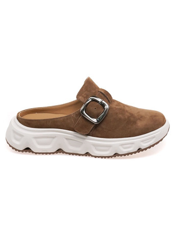 Жіночі шльопанці з натуральної замші в глибокому темно-коричневому кольорі – стильний і комфортний вибір для повного носіння. Два широкі ремінці з регульованими металевими пряжками дозволяють індивідуально підлаштувати посадку, забезпечуючи максимальний комфорт. Анатомічна устілка, виконана з м'якого матеріалу, повторює форму стопи, підтримуючи природний баланс при ходьбі. Легка підошва з коркового матеріалу та гумовим шаром забезпечує амортизацію та надійне зчеплення з поверхнею. Універсальний дизайн робить цю модель ідеальним вибором для прогулянок, відпочинку чи повсюдного гардеробу.