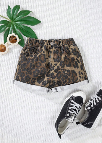 Ці джинсові шорти мають леопардовий принт, еластичний пояс та гудзики. Вони мають кишені для зберігання та виготовлені з нееластичної джинсової тканини. Класичний крій з природною лінією талії та закоченим краєм підходить для короткої довжини.