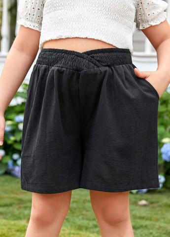 Наші шорти SHEIN Tween Girl мають повсякденний, прямий крій. Вони мають натуральну гумку на талії і дві бічні кишені для додаткової зручності. Ці шорти з однотонної бавовняної тканини ідеально підходять для весняного та літнього одягу.