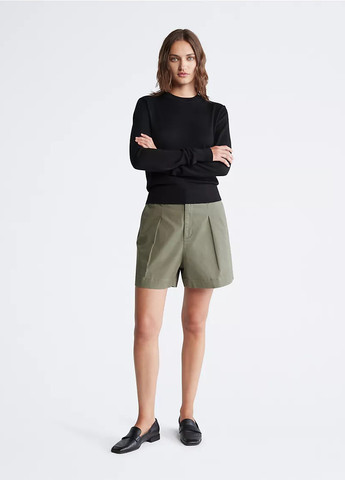 Жіночі шорти Calvin Klein. М'які та комфортні шорти на кожен день. Висока посадка, талія на еластичній резинці із зав'язками. Невеликі розрізи внизу на штанині. Необроблений край. Спереду - дві накладні кишені. Вишитий логотип бренду збоку. Універсальне поєднання: ідеально поєднується з вашим улюбленим одягом. Відмінна якість.