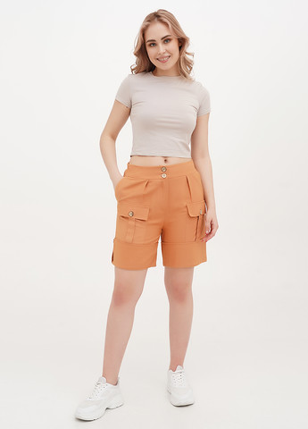 Маленькі шортики, в яких бадьорість духу шукає ноги цього літа! 2 передні кишені. 1 накладна задня кишеня. Оборки в основі. Застібка на гудзики тон у тон.