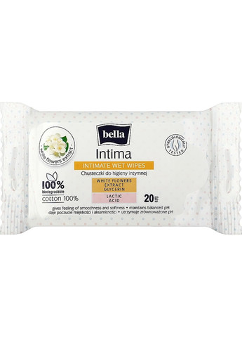 Власниці чутливої шкіри знають, як складно підібрати якісні, гігієнічні продукти, які не лише змогли б позбавити тіло від забруднень, а й позитивно впливали на його мікрофлору. Вологі серветки для інтимної гігієни польського бренду Bella прекрасно адаптуються до всіх типів епідермісу, запобігають появі подразнень і почервоніння, абсолютно не викликають дискомфорту, болісних відчуттів. До того ж, Intima Wet Wipes мають легкий, квітковий аромат, посилений дією рослинних екстрактів. Особливості Intima Wet Wipes від бренду Bella: - практична, малогабаритна упаковка;- чудовий варіант для транспортування і подорожей;- екстракт білих квітів чудово освіжає і тонізує;- гліцерин делікатно пом’якшує чутливу шкіру;- молочна кислота підтримує оптимальний pH баланс;- протестовані під наглядом дерматологів;- без спирту, не містять парабенів;- виготовлені з гіпоалергенного, натурального волокна.