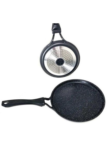 Плоске дно та низькі борти роблять цю модель ідеальною для смаження млинців — тісто рівномірно розподіляється, а готові вироби легко перевертаються та знімаються. Завдяки компактному розміру сковорода зручна у зберіганні та транспортуванні — її можна взяти з собою на дачу чи поїздку.