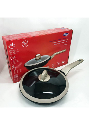 Сковорода з антипригарним покриттям і скляною кришкою Magio 24 см (MG-1170) Діаметр: 24 см Покриття: 2-шарове антипригарне покриття Сумісність із джерелами тепла: індукційні плити, електричні плити, склокерамічні плити, газові плити Кришка в комплекті Індикатор нагрівання: QUICK FRY. У міру нагрівання сковороди змінюється колір індикатора. Щойно сковорода досягає максимальної температури, індикатор Quick Fry стає повністю червоним, показуючи, що досягнута рівномірна та оптимальна температура для приготування страв. Виготовлення: методом штампування Матеріал ручки: бакеліт із Soft touch не нагрівним покриттям. Покриття: стійке двошарове антипригарне покриття GEEHUA чорного кольору, PFOA free Матеріал сковорідки: штампований алюмінієвий сплав 3003 Довжина ручки: 18 см Використання в посудомийній машині Діаметр індукційної площі: 17,9 см Товщина стінок: 2,1 мм Висота стінки: 60 мм Товщина дна: 4.8 мм Вага: 1,49 кг Сковорода Magio MG-1170 діаметром 24 см виготовлена зі штампованого алюмінієвого сплаву 3003 й обладнана двошаровим антипригарним покриттям GEEHUA (PFOA free). Підходить для всіх типів плит, включно з індукційними (діаметр індукційної зони — 17,9 см). Обладнана індикатором нагрівання Quick Fry, що змінює колір у разі досягнення оптимальної температури. Товщина дна — 4,8 мм, стінок — 2,1 мм, висота — 60 мм. До комплекту входить скляна кришка. Бакелітова ручка з Soft touch покриттям не нагрівається. Вага сковороди — 1,49 кг. Можна мити в посудомийній машині. Сковорода Magio MG-1170 — ідеальний вибір для вашої кухні Оцініть зручність і якість приготування з сковородою Magio MG-1170. Завдяки діаметру 24 см и стійкому двошаровому антипригарному покриттю GEEHUA (PFOA free), ваші страви готуватимуться рівномірно, без пригорання та з мінімальною кількістю олії. Переваги Magio MG-1170: Сумісність із будь-якими плитами — підходить для індукційних, газових, електричних і склокерамічних поверхонь Індикатор нагрівання QUICK FRY – колір змінюється під час нагрівання, сигналізуючи про готовність до приготування. Міцна конструкція — виготовлена з штампованого алюмінієвого сплаву 3003, який вирізняється високою теплопровідністю. Надійне дно – товщина 4,8 мм забезпечує рівномірний розподіл тепла та запобігає деформації. Комфорт у використанні – бакелітова ручка з покриттям Soft Touch не нагрівається, забезпечуючи зручне схоплення. Високі стінки (6 см) та оптимальна товщина стінок (2,1 мм) роблять сковороду універсальною для різних страв. Скляна кришка в комплекті — дає змогу контролювати процес приготування без втрати тепла. Легкий догляд — можна мити в посудомийній машині. Сковорода Magio MG-1170 — це стильний, надійний і зручний кухонний аксесуар, який зробить процес приготування ще простішим і приємнішим.