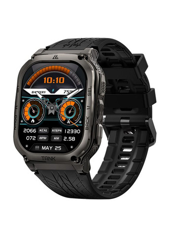 Розумний годинник даної моделі з електронним типом механізму забезпечує точність ходу та високу функціональність. Водонепроникність: 5 ATM & IP69 (Підтримують плавання і дайвінг) Матеріал корпусу / ремінця: метал/ силікон Скло: CORNING GORRILA 3-го покоління (сенсорна панель і панель HEARTREATE) Ширина циферблату: 43 мм Товщина: 12.8 мм Довжина ремінця: 26.9 см Додаток: KOSPET FIT Мова: Українська і багато інших Ємність акумулятора: 480 mAr Ресурс батареї: режим очікування 50 днів; щоденне використання 10-15 днів; завжди ввімкнений дисплей 2-3 дня Дисплей: 1,96'' AMOLED 410*502 Час постійного відображення Сумісність: Android 5.1 & iOS 11.0 і вище У годиннику присутні функції: години, хвилини, секунди, зміна стилю циферблата, можливість здійснювати телефонні дзвінки та розмовляти прямо з годинника, моніторинг сну, будильник, калькулятор, секундомір, оповіщення про дзвінки / смс / соціальні мережі, пульсометр, оксиметр, можливість керувати музикою, прогноз погоди, 170 спортивних режимів з функцією інтелектуального розпізнавання (ходьба, біг, тренажер веслування, еліптичний тренажер, стаціонарний), тест ефективності плавання SWOLF Комплектація: магнітна зарядка з USB-кабелем, захисне скло, інструкція Даний смарт годинник дуже хорошої якості