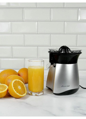 Опис Соковижималка електрична Kamille Vizo для цитрусових для вижимки в склянку (6737) Соковитискач для цитрусових електричний Kamille дозволить за лічені секунди видавити сік і подати його до столу. у зручному глечику з ручкою та носиком, з якого зручно розливати фреш по склянках. Влаштування виробу Корпус із двигуном. Вісь трансмісії. Місткість для м'якоті з носиком. Фільтр. Конус для цитрусових. Електричний соковитискач для цитрусових. Потужність: 40Вт. Кількість насадок: 1. Колір: чорний, сірий. Довжина шнура: 1м. Обертання у двох напрямках. Використання: Підключіть пристрій до мережі. Розріжте цитрусові навпіл. Запустіть прилад натисканням на фрукт, коли він буде поміщений на конус. Сік надходить прямо в склянку через носик, який потрібно опустити, щоб відкрити систему захисту від крапель. Щоб зупинити пристрій, просто перестаньте тиснути на конус. Необхідно періодично очищати фільтр та видаляти залишки м'якоті, максимальний об'єм резервуару для м'якоті 200 мл.