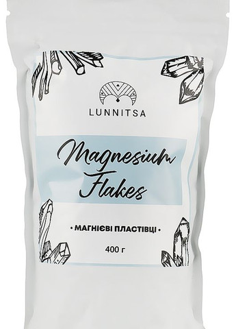 Чарівна сила магнію була виявлена в Німеччині ще наприкінці XIX століття, коли його вперше почали застосовувати для профілактики і лікування захворювань нервової системи, м'язів і суглобів. На той час водні процедури з магнієм могли дозволити собі лише заможні громадяни, а зараз ця розкіш доступна всім. Тепла ванна з магнієвими пластівцями підвищує стійкість до стресів, знімає емоційну напругу, поліпшує обмін речовин, виводить токсини, покращує сон, зміцнює імунну систему, нормалізує кров'яний тиск, поліпшує роботу серця. Особливості Lunnitsa Magnesium Flakes (дой-пак): - рекомендується при безсонні, психічних розладах, ослабленій імунній системі, збої ендокринної системи, гіпертонії, ВСД;- доступна ціна;- економна витрата;- не містять ароматизаторів, барвників та ароматизаторів;- підходять навіть для маленьких дітей і людей з чутливою/алергенною шкірою;- знімають фізичну втому та крепатуру, прискорюють процес загоєння ран і садна;- покращують загальний стан шкірного покриву;- водні процедури з магнієм рекомендуються тим, хто активно займається спортом, стежить за фігурою і бажає скинути зайву вагу.