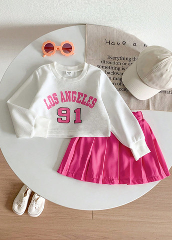 Комплект SHEIN Young Girl Letter Graphic Set. Цей комплект складається з різнокольорового світшота з принтом та плісованої спідниці. Світшот має круглий виріз та довгі рукави. Спідниця плісована та має класичний крій. Комплект виконаний із тканини середньої еластичності з додаванням поліестеру. Інструкція з догляду: тільки ручне прання.