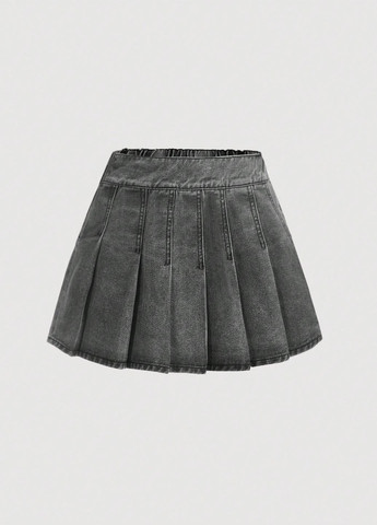 Колір Темно-сірий / Фасон Плісе / Висота посадки Середня талія / Довжина виробу Міні / Матеріал Бавовна, Джинс