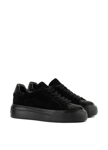 Чорні кеди оздоблені сяючими блискітками, поєднують в собі комфорт і модний вигляд. Виконані з натуральної замші. Повнота моделі: середня.