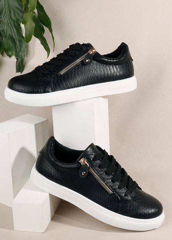Жіночі кеди – модні та зручні. Вони мають м'який класичний дизайн з модним верхом зі штучної шкіри зі зміїним принтом. Мають круглу шкарпетку та шнурівку. Бічна блискавка додає зручності.