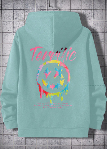 Толстовка чоловічих великих розмірів, з капюшоном на блискавці спереду. Ця толстовка з довгими рукавами, капюшоном та спущеними плечима. Має стандартний поділ та класичний крій. Має застібку на блискавку, кишені та куліску. Візерунок виконаний у стилі готика/панк. Виготовлена із трикотажного полотна середньої еластичності. Тільки машинне прання.