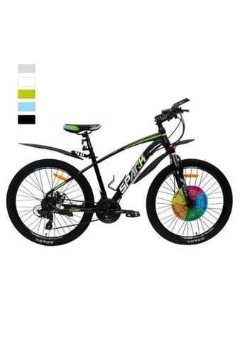 Велосипед AL 26" Spark Sharp рама 14" чорний Основні параметри: Розмір коліс — 26" Вага — 17,2 кг Розмір рами — 14" Гендер — дорослий Тип велосипеда — гірський Кількість швидкостей — 21 шв Рама — сталева Вилка амортизаційна з прелоадом і локаутом. Монета ліва — SHIMANO EF500 — 3 Монетка права — SHIMANO EF500-7 Задний переключатель – SHIMANO TY300 Передний переключатель – SHIMANO TZ30 Кассета / Трещотка - трещотка Гальмо переднє — дискове, діаметр ротора 160 мм. Гальмо заднє — дисковий, діаметр ротора 160 мм. Каретка — картридж KENLI Кермо-ластівка, 620 мм ( 22,2х25,4*1,2Т) Винос — МТВ 80 мм, алюміній. Грипси — ПВХ 125 мм Тросики – передний – 930 мм; задний – 1650 мм Шатуни 1/2х3/32х24х34х42Tх170 мм*9/16", три зірки, чорний, захист 170 мм Педалі — алюмінієві WP-625 Втулка передня — SHUNGFEN HB25F на промпідшипнику з віссю з ексцентриком Втулка задня — SHUNGFEN HB25R на промпідшипнику Ободи — алюміній 2-х стіновий 14G*36H Покришки — SPARK 26"2,125 Камера — 26"1,95 бутил Сідло тип — MTB, матеріал — шкір.зам, яскравий дизайн Підсідельний штир – 28,6х300 mmх1,2T