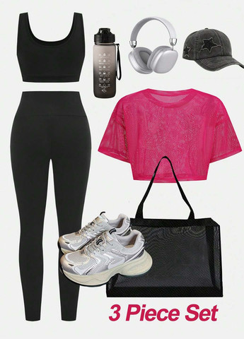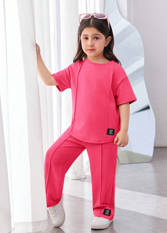 Комплект спортивного одягу для дівчаток, фіолетовий, із 2 предметів. Цей комплект спортивного одягу включає фіолетовий топ з короткими рукавами і шорти в тон. Комплект виконаний із приємного до тіла еластичного матеріалу. Круглий виріз горловини та стандартний поділ. Шорти на резинці. Тільки ручне прання.