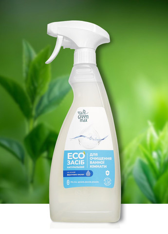 ВИКЛЮЧНО НАТУРАЛЬНІ КОМПОНЕНТИ • В складі виключно натуральні компоненти рослинного і мінерального походження • БЕЗ PEG, SLS, крезолів, фенолів, фталатів • не містить SLS / SLES, фосфатів, фосфонатов, хлору, оптичних відбілювачів, триклозану, парабенів ПРИЗНАЧЕННЯ ТА ПЕРЕВАГИ • Засіб призначений для очищення ванн, сантехніки, кахлю. • Повністю безпечно для скляних, емальованих, керамічних, акрилових, хромованих та інших видів поверхонь. • Ефективно видаляє водний камінь, іржу, вапняний наліт, мило, жирні плями та інші забруднення. • Легко змивається , повертає блиск поверхням, залишає свіжий і приємний аромат. • Натуральний засіб ГРІН МАКС ЕФЕКТИВНО ВИДАЛЯЄ Завдяки спеціально розробленій формулі на основі органічних кислот засіб ефективно видаляє: • водний камінь • іржу • вапняний наліт • мило • жирні плями • та інші забруднення. СКЛАД: Вода, <5% фруктові кислоти (гліколева, молочна), натуральна ПАР алкілполіглікозид (з рослинної олії та цукру), ефірна олія грейпфрута, екстракти граната й червоного грейпфрута, цитрат натрію, сорбат калію, консервант Optiphen BD. СПОСІБ ЗАСТОСУВАННЯ Рівномірно розподілити засіб на поверхні, залишити на 5-10 хвилин, при необхідності потерти поверхню щіткою або губкою. Змити водою.