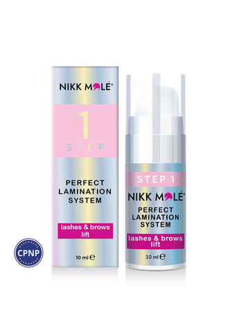 Засіб для ламінування вій та брів Nikk Mole STEP №1 - призначений для першого етапу процедури. Він пом’якшує кутикулу волосків і розкриває їх лусочки, завдяки чому вони краще піддаються впливу активних компонентів складу, які проникають у структуру волоска з метою ремодулювання зв’язків. До складу входить гідролізований кератин, що сприяє захисту волосків під час процедури.
