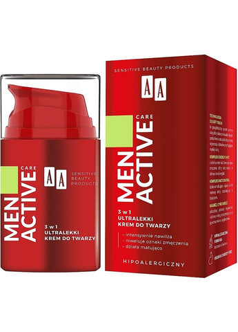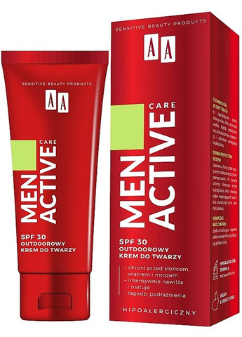 Опис Крем для обличчя з SPF 30 Men Active Care від бренду AA Cosmetics — це денний крем для обличчя, розроблений спеціально для чоловіків. Він містить сонцезахисні фільтри, які убережуть молодість шкіри та підвищать бар’єрні властивості епідермісу. Крем дуже легкий і має матуючий ефект, тому ваше обличчя матиме чудовий вигляд увесь день. Ніякого обтяження та ефекту маски крем не створює, він швидко вбирається і не липне. Особливості Men Active Care від AA Cosmetics: - SPF 30;- забезпечує захист від ультрафіолетових променів, знижуючи ризики появи опіків, пігментації та фотостаріння;- технологія 3D Soft Touch стимулює процеси відновлення шкіри, загоює ранки та усуває запалення;- система Derma-Protection усуває негативні наслідки впливу ультрафіолету;- комплекс Mat Control матує шкіру та запобігає появі жирного блиску;- веганський продукт, який не тестують на тваринах;- гіпоалергенний;- формулу розроблено спеціально для чоловіків;- глибоко зволожує та запобігає появі сухості. Спосіб застосування Нанесіть невелику кількість крему на очищену шкіру обличчя, уникаючи зони навколо очей. Рівномірно розподіліть крем по обличчю та шиї до повного всотування. Склад Aq, Methylene Bis-Benzotriazolyl Tetramethylbutylphenol (nano), Polyglyceryl-6 Stearate, Coco-Caprylate/Caprate, Dicaprylyl Carbonate, Dibutyl Adipate, Pentylene Glycol, Triethylhexanoin, Ethylhexyl Triazone, Bis-Ethylhexyloxyphenol Methoxyphenyl Triazine, Sodium Polyacrylate, Tocopheryl Acetate, Potassium Cetyl Phosphate, Decyl Glucoside, Myristyl Myristate, Panthenol, Cetearyl Alcohol, Oryza Sativa Powder, Propylene Glycol, Bambusa Vulgaris Shoot Extract, Sorbitol, Lactobacillus Ferment, Xanthan Gum, Tocopherol, Polyglyceryl-6 Behenate, Ethylhexyl Stearate, Trideceth-6, Allantoin, Phenoxyethanol, Ethylhexylglycerin, Hydroxyacetophenone, Tetrasodium Glutamate Diacetate, Cetyl Hydroxyethylcellulose, Sodium Hydroxide, Parfum