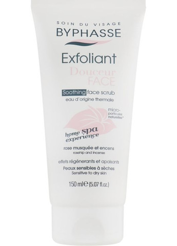 Щоб шкіра обличчя була сяйною, м’якою, гладенькою та пружною, періодично слід робити делікатне скрабування. Гарний вибір — першокласний пілінговий засіб Byphasse Soothing Face Scrub, активна формула якого направлена на м’яке усенення ороговілих часточок, делікатне розгладження і глибоке відновлення шкіри. Скрабувальні мікрочасточки дуже м’яко виконують своє призначення, надають очищувальну дію й активізують процес регенерації клітин. Рослинні екстракти у складі косметичного продукту мають заспокійливу і зволожувальну дії, усувають сухість і лущення, стимулюють вироблення колагенових волокон і підвищують еластичність шкірного покриву. Спосіб застосування: нанести на чисту вологу шкіру та масажувати 2-3 хвилини. Змити теплою водою. Застосовувати 1-2 рази в тиждень.