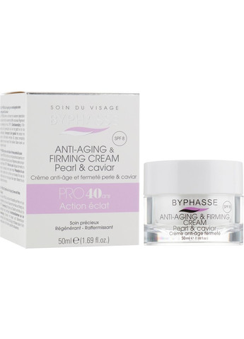 Омолоджуючий крем Byphasse Anti-aging Cream Pro40 Years Pearl And Cavia — чудовий варіант для щоденного догляду за шкірою, яка потребує глибокого відновлення, живлення і зволоження. Завдяки делікатній формулі засіб може використовуватися не лише вранці і ввечері, але також в якості легкої бази під макіяж, адже продукт містить сонцезахисний фактор, тому оберігає шкіру від агресивного впливу уф-променів. Невагома кремова консистенція покриває шкіру вуаллю, яка швидко всмоктується, відмінно свіжає обличчя і попереджає виникнення жирної плівки. У складі продукту містяться поживні інградієнти, які здійснюють регенерируючий, антиоксидантний, заспокійливий і тонізуючий вплив. Активні речовини сприяють підвищенню пружності і еластичності шкіри, стимулюють клітинний метаболізм і уповільнюють процес старінння епідермісу.