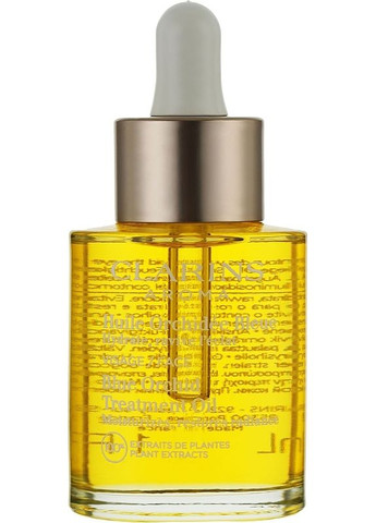Серія косметичних олій для обличчя від компанії Clarins містить інтенсивно зволожувальну та заспокійливу олію Santal Face Treatment Oil, яка призначена для догляду за сухою та схильною до почервоніння шкірою. 100% натуральна рослинна основа олії живить, зволожує та тонізує шкіру, даруючи їй м'якість шовковистість, а також допомагає боротися з подразненням і почервонінням. Олія «Сантал» має ароматерапевтичний ефект, заспокоюючи і розслаблюючи. Базою для косметичного засобу Clarins Santal Face Treatment Oil слугує олія лісового горіха, яка живить шкіру мінералами, вітамінами та кислотами, ефективно утримує вологу і має підтягуючу дію. Олія сандалового дерева пом'якшує і заспокоює шкіру, усуває запалення і подразнення. Олія лаванди помітно покращує мікроциркуляцію в тканинах і знімає почервоніння шкіри. Освітлювальна олія петрушки підсилює кровообіг і тонізує шкіру. Регулярне використання олії відновлює водний баланс шкіри, робить її більш гладенькою та ніжною.