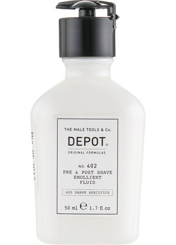 Перетворити рутинну для більшості чоловіків процедуру на приємний процес прагнули італійські фахівці, створивши флюїд до і після гоління Depot Shave Specifics 402 Pre & Post Shave Emollient Fluid. Особливо незамінним засіб стане для власників шкіри, схильної до подразнень і висипань. Рідина легко розподіляється на шкірі та швидко всотується, не залишаючи відчуття липкості. Унікальна формула на основі гліцерину, камфори, олій оливи, мигдалю, евкаліпта і м'яти починає діяти миттєво. Засіб тонізує і заспокоює епідерміс, пом'якшує його, усуває подразнення і почервоніння, зволожує, сприяє підтриманню оптимального рівня вологи, насичує вітамінами і мікроелементами, а також прискорює процеси регенерації. Спосіб застосування: перед голінням – нанести на шкіру, розподілити масажними рухами і продовжити гоління з вибраним засобом. Після гоління – нанести на шкіру, рівномірно розподіляючи масажними рухами.