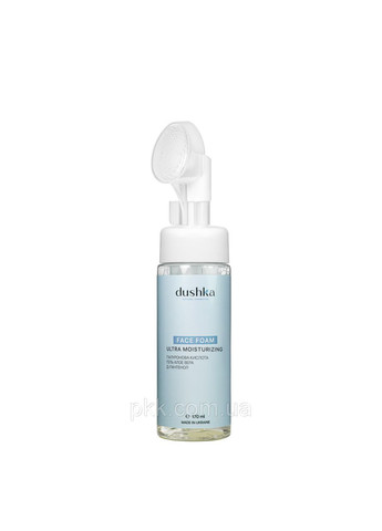 Зволожуюча пінка для вмивання обличчя Dushka з гіалуроновою кислотою, алое вера, Д-пантенолом Ніжна зволожувальна пінка Dushka призначена для м'якого та ефективного очищення шкіри обличчя. Очищувальний засіб для обличчя глибоко зволожує епідерміс, нормалізує вироблення шкірного себуму, запобігає відчуттю сухості після очищення. Формула пінки містить ефективні зволожувачі — гіалуронову кислоту та гель алое вера. Спосіб застосування: Нанести очисну пінку на вологу шкіру обличчя масажними рухами, змити теплою водою. Об'єм: 170 мл