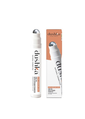 Роликова сироватка-гель для догляду за молодою шкірою навколо очей Dushka Eye Cream With Vitamin Complex з вітамінами А, С, Е, B5 для віку 16+ Натуральна сироватка-гель у зручному ролері створена для глибокого догляду за ніжною шкірою повік з 16 років. Серум надає регенерувальну й антиоксидантну дію, живить шкіру навколо очей, зміцнює її захисний бар'єр, підвищує пружність і еластичність. Металевий ролер сприяє швидшому вбиранню засобу в епідерміс, а також забезпечує легкий масаж. У разі регулярного застосування сироватки-ролера епідерміс під очима згладжується, ранні зморшки стають менш помітними, підвищується тонус шкіри. Сироватка-гель підходить для всіх типів шкіри. Більш швидкий і відчутний результат ви досягнете за одночасного застосування серуму-гелю в поєднанні з кремом навколо очей «З вітамінним комплексом», оскільки вони підсилюють дію один одного. Головний актив сироватки для підліткової шкіри навколо очей — комплекс вітамінів А, Е, С, В5. Поєднання цих елементів сприятливо впливає на ніжну та тонку шкіру, яка першою відчуває на собі вплив вікових процесів: антиоксидантна дія — протистоїть передчасному руйнуванню клітин шкіри; живить і стимулює відновлення клітин епідермісу; усуває подразнення; вирівнює тон шкіри; підвищує еластичність шкірного покриву під очима. Спосіб застосування: Нанесіть сироватку-гель на шкіру повік, використовуючи вбудований ролер, перед нанесенням крему. Дайте вбратися. Об'єм: 15 мл