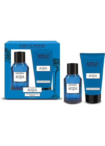 Опис Jeanne en Provence Aq Склад набору: Jeanne en Provence Aq – Туалетна вода, 100 мл + Jeanne en Provence Aq – Гель для душу, 150 мл. Туалетна вода Aq від бренда Jeanne en Provence полонила харизматичні чоловічі серця натхненними переливами бадьорості, свіжості та чистоти, що спричинило шалений попит на «невагомий аксесуар». Враховуючи популярність ароматично-водяних парфумів, його творці без вагань продовжили загадкову «історію» однойменним гелем для душу. Практичний набір стане в нагоді кожного разу, коли бажання відволіктися від рутинних справ співпадає з потребую шкіри в глибокому зволоженні. Гігієнічний засіб позбавляє її сухості, тьмяності, почервонінь разом з дрібними недоліками, водночас примножуючи класичні образи досконалим мускусним присмаком зі сандаловими переливами. Jeanne en Provence Aq – Туалетна вода Початкова нота приваблює амбітну чоловічу свідомість мотиваційними водяними переливами, що наповнюють енергетичні резерви, додають сили та снаги, повсякчас приближуючи свого повелителя до омріяних горизонтів. Замріяна троянда бореться зі втомою, скутістю, емоційним напруженням, розбавляючи свіжість прологу загадковими переливами чуттєвості й щирості… Нота «серця» виважено спостерігає за неочікуваними ноктюрнами вступу, втім щойно запашна сосна починає малювати власний силует за обрієм – це означає, що настав період правління багатокомпонентної кульмінації. Прикрашене дорогоцінними візерунками з духмяного кипарису, тендітної шавлії, відвертої лаванди, полотно грається з розумом доти, доки мускатний горіх не затьмарює ці малюнки своєю силою і стійкістю. Кінцева нота підхоплює пряний ритм попередньої фази насиченими моховими іскрами, сигналізуючи про приближення безкрайнього шлейфу. Уособлений перевагами мужнього сандалового дерева та густого білого мускусу, таємничий присмак ні на мить не полишає власного володаря, оберігаючи його від несприятливих обставин, злих людей, поразок і невдач. Jeanne en Provence Aq – Гель для душу - густу консистенція чудово піниться, контактуючи з водою;- ефективно видаляє різноманітні забруднення;- справляється зі скупченнями поту, пилу, неприємними запахами;- дарує тривале відчуття чистоти, свіжості та прохолоди;- ароматичний шлейф сприяє емоційному розслабленню;- має живильні, зволожувальні, відновлювальні функції;- активно бореться з видимими ознаками дегідратації;- запобігає повторній появі сухості, тьмяності, лущінь, почервонінь;- тішить протизапальними, заспокійливими перевагами;- усуває алергічні висипи з тіла й дискомфорт, що вони провокують;- делікатно пом’якшує загрубілі ділянки шкіри;- дбайливий склад адаптований до регулярної гігієни всіх її типів;- просто змивається, не залишаючи мильного осаду;- презентований у компактному тюбикові тревел-формату. Склад ALCOHOL DENAT., AQUA (WATER), PARFUM (FRAGRANCE), BENZYL SALICYLATE, CITRONELLOL, EUGENOL, GERANIOL, LIMONENE, LINALOOL