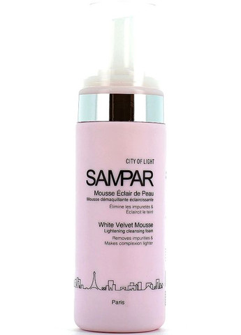 Пінка для очищення шкіри та демакіяжу від бренда Sampar змінить ваше ставлення до ритуалу вмивання. Її ніжна та активна формула збагачена кислотами й ензимами, що делікатно відлущують ороговілі клітини та сприяють оновленню епідермісу. Пінка також ретельно очищає шкіру від залишків макіяжу та накопиченого себуму. Вона нормалізує роботу сальних залоз завдяки зеленому чаю у формулі, вирівнює тон обличчя та повертає йому природне здорове сяйво. Особливості Sampar City Of Light White Velvet Mousse: - пробіотичні ензими стимулюють природне очищення шкірного покриву від ороговілих частинок;- АНА- та фруктові кислоти стимулюють делікатне відлущення мікрочастинок ороговілого шару епідермісу, оновлюють шкірний покрив;- екстракт зеленого чаю тонізує та освітлює шкіру, надає антиоксидантного ефекту;- комплекс Urban Advance Complex — це антиполушн-елемент, що захищає обличчя від зовнішніх забруднень, нейтралізує згубний вплив вільних радикалів;- має ніжний рожевий колір та свіжий аромат;- 90% інгредієнтів натурального походження;- сумісна з усіма типами шкіри.