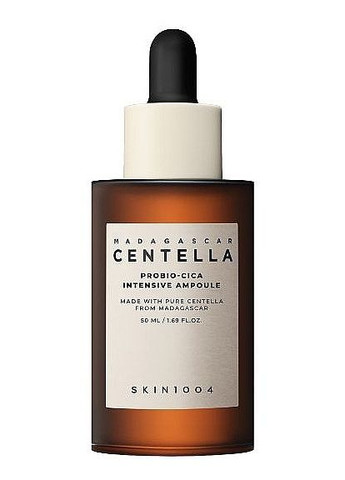 Особливості SKIN1004 Madagascar Centella Probio-Cica Intensive Ampoule: підходить для всіх типів шкіри. включаючи чутливу та суху стимулює відновлення захисного бар'єра шкіри має протизапальну дію регенерує зволожує нейтралізує запалення усуває почервоніння екстракт центелли азіатської - має зволожувальну, регенерувальну та антивікову дію ніацинамід - зміцнює захисний бар'єр шкіри, регулює секрецію шкірного сала, має антиоксидантну, протизапальну та освітлювальну дію, звужує пори алантоїн - має заспокійливі властивості та мінімізує подразнення гіалуронат натрію - має зволожувальну, розгладжувальну та антивікову дію цераміди - стимулюють регенерацію шкіри, мають антивіковий ефект та утримують вологу в глибоких шарах шкіри Спосіб застосування: нанести необхідну кількість засобу на очищену і тонізовану шкіру обличчя, шиї та декольте.