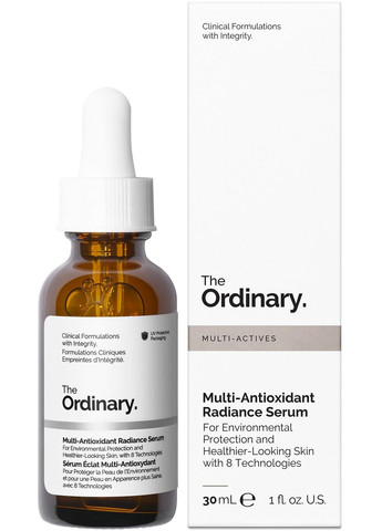 Мультиантиоксидантна сироватка для сяйва шкіри - це щоденна сироватка, що містить антиоксидантні та захисні технології, яка пом'якшує наслідки впливу навколишнього середовища та помітно освітлює тьмяну шкіру. Мультиактивна сироватка для сяйва шкіри бореться з наслідками впливу стресових факторів навколишнього середовища, таких як забруднення та смог, які можуть призвести до тьмяності шкіри та передчасного старіння. Формула надає шкірі сяйва, одночасно допомагаючи зменшити видимість темних плям та вирівнюючи текстуру шкіри, допомагаючи зменшити появу ознак старіння шкіри, пов'язаних із впливом навколишнього середовища. Мультиантиоксидантна сироватка для сяйва шкіри поєднує в собі 8 технологій, включаючи вітамін С та женьшень, забезпечуючи багатогранний антиоксидантний захист як вдень, так і вночі. При нанесенні протягом дня сироватка допомагає захистити шкіру від шкідливого впливу забруднення навколишнього середовища, одночасно зміцнюючи її бар'єр та забезпечуючи тривале зволоження, підвищуючи пружність. При нанесенні на ніч засіб продовжує забезпечувати антиоксидантний захист шкірі, що відпочиває і відновлюється, надаючи їй сяйва і роблячи її помітно світиться протягом дня. Сироватка Multi-Antioxidant Radiance Serum, що входить до нашої лінійки Multi-Active Solutions, містить вісім ключових технологій:Аскорбіл глюкозид: стабілізована форма вітаміну С, яка перетворюється на активну форму всередині шкіри.Екстракт женьшеню: рослинний екстракт, який допомагає захистити та заспокоїти шкіру, що реагує на стрес, спричинений агресивними зовнішніми факторами.EGCG: розроблений для захисту від подразників навколишнього середовища, а також для захисту шкіри від зовнішніх стресових факторів, які можуть сприяти появі ознак старіння.Ацетилтетрапептид-2: захисний біоміметичний пептид, який допомагає боротися з нерівним тоном шкіри, надаючи їй більш сяючого та здорового вигляду.Гептапептид-6: пептид із куркумою, який допомагає захистити від агресивних впливів навколишнього середовища та одночасно пом'якшує типові ознаки старіння.Ерготіонеїн: антиоксидант, який природно міститься в шкірі і допомагає захистити її від впливу факторів навколишнього середовища, здатних викликати видимі пошкодження шкіри.Токотрієноли: ці молекули, отримані з насіння аннато і є джерелом вітаміну Е, допомагають захистити від шкідливого впливу забруднення навколишнього середовища, що може сприяти появі ознак старіння шкіри, пов'язаного з погодними умовами. Вони також знімають ознаки подразнення шкіри, які можуть бути спричинені стресовими факторами довкілля.Екстракт спорокарпія тремели фукусоподібної: полісахарид (ланцюжок цукроподібних молекул), що отримується зі сніжного гриба, який утворює захисну плівку на поверхні шкіри, допомагаючи притягувати та утримувати воду.