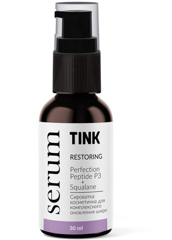 Любов себе проявляється у якісній, органічній косметиці. Вона не шкодить як вашій шкірі, так і навколишньому середовищу. Український бренд Tink дотримується саме такої філософії. Він випустив «Відновлювальну сироватку для обличчя з пептидами», яка містить у собі магію самої природи. Поліпшити стан шкіри, позбутися сухості та лущення, отримати глибоке зволоження та постійне відчуття комфорту – ось, що ви отримаєте. Насолоджуйтесь тільки найкращим вибором! Особливості Perfection Peptide P3+ Sqlane Restoring Serum від бренду Tink: - комплекс Perfection Peptide P3 та сквалан запускають регенерацію шкіри, насичують її вологою;- повертають тонус епідермісу, надають еластичність;- поверхня обличчя стає м'якою, рівною та підтягнутою;- розгладжує мімічні зморшки;- інтенсивно живить шкіру, надає їй сяючого вигляду.