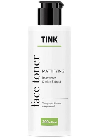 Легкий тонер для обличчя Tink™ містить активний компонент - трояндову воду, яка допомагає звузити пори та знизити вироблення себуму, глибоко очищає та освіжає шкіру, зберігаючи її зволоженою. Екстракт алое у складі засобу запобігає утворенню висипань та допомагає підтримувати рівний тон шкіри. Екстракт манго допомагає прибрати жирний блиск та надає шкірі матовості. Не містить спирту.