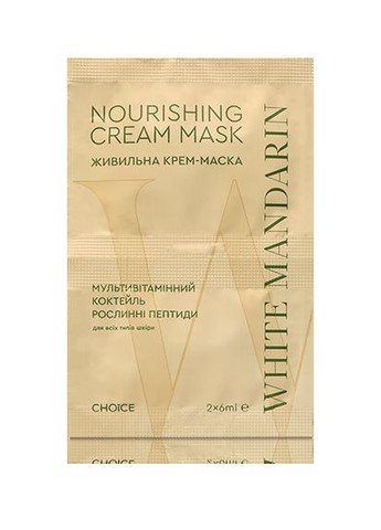Має виражену омолоджувальну та розгладжувальну дію. Інноваційна формула крем-маски поєднує рослинні пептиди, отримані з пророщених зерен пшениці, вівса, кукурудзи, жита, ячменю, а також екстракти трав. Регулярне застосування маски покращує еластичність і пружність шкіри, скорочує кількість і глибину зморшок, стимулює швидке оновлення клітин. Живильна крем-маска «Мультивітамінний коктейль» ✓ Має унікальну властивість регенерувати пошкоджені структури шкіри, миттєво відновлює епідерміс та робить шкіру м’якою і бархатистою на дотик ✓ інтенсивно живить і насичує шкіру вітамінами та мінералами ✓ стимулює вироблення колагену, повертаючи молодість шкіри. Спосіб застосування Розподіліть вміст одного саше рівним шаром товщиною в 1-2 мм на очищену шкіру на 20-30 хвилин, потім змийте залишки маски. Використовувати 1-2 рази в тиждень. Комбінуйте поживну крем-маску "Мультивітамінний коктейль" з іншими масками для особи від White Mandarin. Уникайте попадання маски на слизову оболонку губ і шкіру навколо очей.