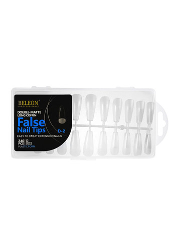 Овальні матові прозорі типси для нарощування нігтів BELEON 240 штук Новинка від фірми BELEON - матові прозорі типси для нарощування нігтів. Пластикові типси – унікальний продукт, який замінить майстру форми для нарощування, гель та прискорить процес до 30 хвилин. Типси виготовлені з унікального моделюючого гелю. Вони мають високу міцність і гнучкість. Форми імітують натуральну нігтьову пластину, тонкі та еластичні. Спосіб застосування: підготувати нігтьову пластину, зробивши класичний чи апаратний манікюр. Нанести основу на весь натуральний ніготь і полімеризувати 1-2 хв у лампі. Підібрати типси потрібного розміру. На контактну зону всередині типи нанести базове покриття. Здійснити постановку форм на нігтьову пластину і, притримуючи їх на пальці, перенести руку під лампу і сушити до повної полімеризації. Надати бажану форму нігтя за допомогою пилки. Після цього відбувається нанесення гель-лаку бажаного кольору і просушується або в УФ-лампі (2 хв), або в LED лампі (1 хв).