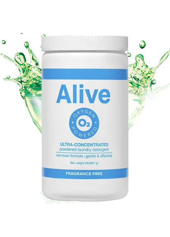 Натуральний пральний порошок на основі безпечних природних компонентів. Призначений для видалення стійких багатокомпонентних плям і збереження яскравого кольору тканин. Легко розчиняє складні забруднення, не викликаючи алергії та подразнення шкіри. Ефективно і дбайливо відпирає тканини за будь-якої температури та жорсткості води. Підходить для будь-якого типу і кольору тканини (крім шовку та вовни). Містить активний кисневий відбілювач, цеоліти, ензими, КМЦ, і чудово розчиняє та видаляє забруднення різного походження, не пошкоджуючи структуру тканини. Підходить для ручного та машинного прання. Економічний у застосуванні (25 г порошку на 1 стандартне прання). Не містить фосфатів, ароматизаторів, барвників та інших токсичних речовин. Підходить для септичних систем. Спосіб застосування Машинне прання (середнє забруднення): кількість білизни – 4-5 кг; дозування порошку: ½ мірної ложки (25 г). Машинне прання (сильне забруднення): кількість білизни – 4-5 кг; дозування порошку: 1 мірна ложка (50 г). Машинне прання (замочування): кількість білизни – 4-5 кг; дозування порошку: ½ мірної ложки (25 г). Ручне прання: кількість білизни – 1-2 кг; дозування порошку: ¼ мірної ложки (12,5 г). Прання стійких і застарілих плям: дозування порошку: ½ мірної ложки засобу для відбілювання Alive + 1 мірна ложка порошку для прання Alive. Спосіб зберігання Зберігати в сухому, недоступному для дітей місці. Не піддавати різким коливанням температур, не заморожувати, уникати тривалого зберігання за температури вище 32°C. Термін придатності 3 роки Країна виробництва США