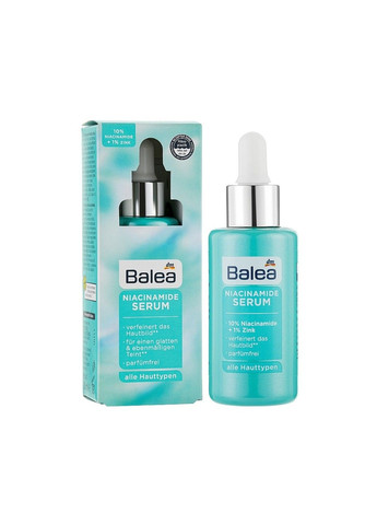 Сироватка з цинком для обличчя Balea Niacinamide Serum — ідеальне рішення для щоденного догляду за шкірою, що потребує зволоження, заспокоєння та оновлення. У її основі — ніацинамід, потужний багатофункціональний компонент, який вирівнює тон, зменшує пігментацію, звужує пори та зміцнює захисний бар'єр шкіри. Разом із цинком PCA він допомагає нормалізувати роботу сальних залоз, зменшити запалення й підтримувати чистоту шкіри. Зволожуючий комплекс включає гліцерин, пентиленгліколь та гіалуронову кислоту — компоненти, що забезпечують глибоке зволоження на клітинному рівні, зберігаючи м’якість і пружність шкіри протягом усього дня. Сік листя алое вера та пантенол заспокоюють подразнення, стимулюють відновлення клітин і надають ніжного охолоджуючого ефекту. Для підтримки мікрорельєфу шкіри до складу включено целюлозну гуму, яка створює делікатну захисну плівку, а алантоїн пом’якшує та сприяє загоєнню. Ксантанова камедь і лимонна кислота м’яко регулюють pH, підтримуючи комфорт шкіри навіть після очищення. Сироватка підходить для всіх типів шкіри, особливо для комбінованої, жирної та проблемної. Вона швидко поглинається, не залишаючи липкості, і стає ідеальною основою під крем чи макіяж. Це базовий, але ефективний догляд для щоденного балансу, чистоти та сяйва шкіри. Засоби від бренду Balea доступні до замовлення за вигідними цінами в інтернет-магазині Cosmic. Застосування: нанести засіб на очищену шкіру обличчя масажними рухами. Склад: Aqua, Niacinamide, Glycerin, Pentylene Glycol, Aloe Barbadensis Leaf Juice, Zinc Pca, Panthenol, Phenoxyethanol, Cellulose Gum, Allantoin, Sodium Benzoate, Citric Acid, Xanthan Gum, Ethylhexylglycerin, Trisodium Ethylenediamine Disuccinate, Sodium Hyaluronate.